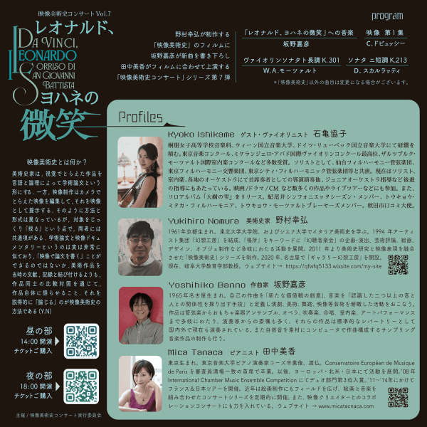 「映像美術史」以外の曲目は予告なく変更される場合がございます。ご了承ください。
